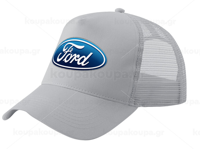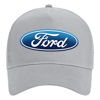 Ford, Adult Structured Trucker Hat, with Mesh, GRAY (100% COTTON, ADULT, UNISEX, ONE SIZE)