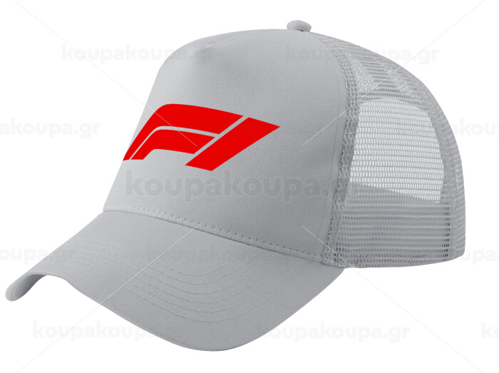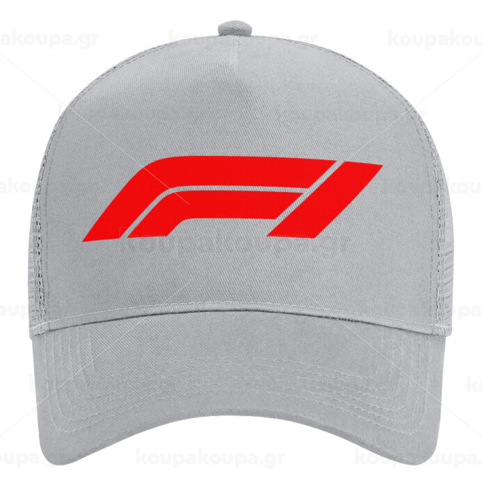 Formula 1, Adult Structured Trucker Hat, with Mesh, GRAY (100% COTTON, ADULT, UNISEX, ONE SIZE)