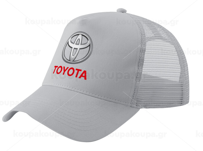 Toyota, Adult Structured Trucker Hat, with Mesh, GRAY (100% COTTON, ADULT, UNISEX, ONE SIZE)