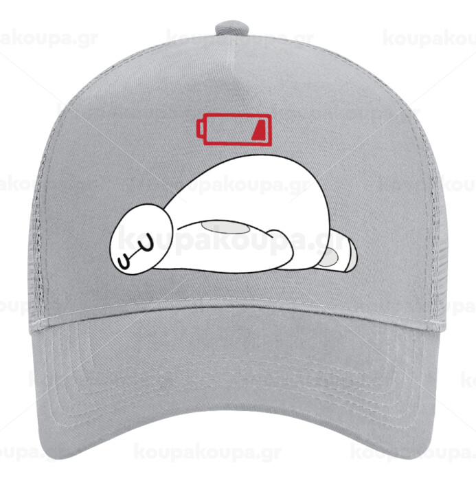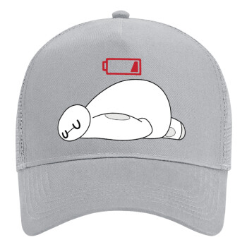 Baymax battery low, Adult Structured Trucker Hat, with Mesh, GRAY (100% COTTON, ADULT, UNISEX, ONE SIZE)