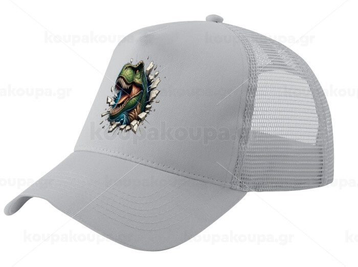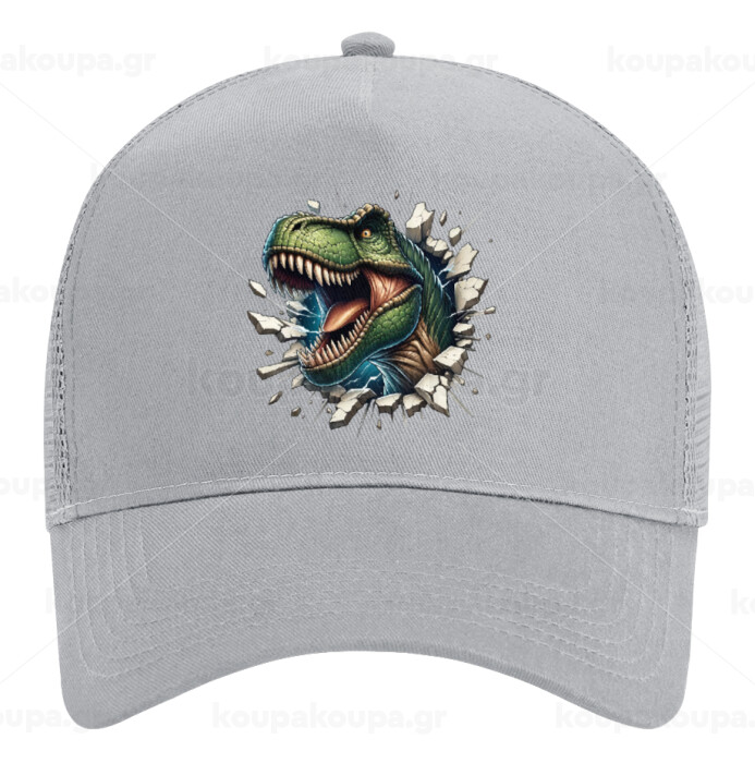 Dinosaur break wall, Adult Structured Trucker Hat, with Mesh, GRAY (100% COTTON, ADULT, UNISEX, ONE SIZE)