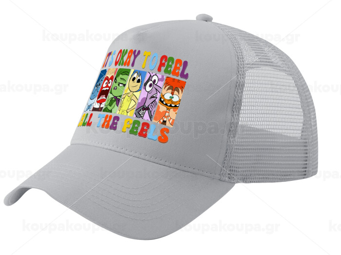 Inside Out It's Okay To Feel All The Feels , Adult Structured Trucker Hat, with Mesh, GRAY (100% COTTON, ADULT, UNISEX, ONE SIZE)