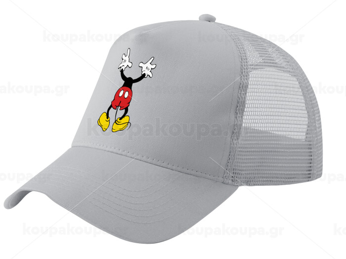 Mickey hide..., Adult Structured Trucker Hat, with Mesh, GRAY (100% COTTON, ADULT, UNISEX, ONE SIZE)