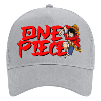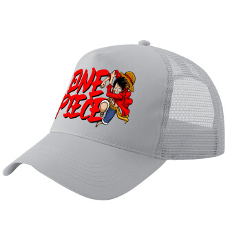 One Piece, Adult Structured Trucker Hat, with Mesh, GRAY (100% COTTON, ADULT, UNISEX, ONE SIZE)