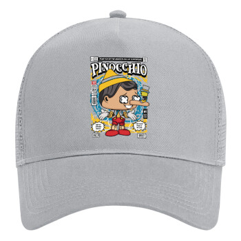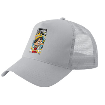 Pinocchio, Adult Structured Trucker Hat, with Mesh, GRAY (100% COTTON, ADULT, UNISEX, ONE SIZE)