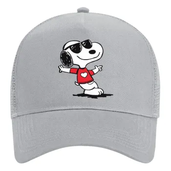 Snoopy καρδούλα, Adult Structured Trucker Hat, with Mesh, GRAY (100% COTTON, ADULT, UNISEX, ONE SIZE)