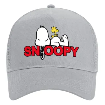 Snoopy sleep, Adult Structured Trucker Hat, with Mesh, GRAY (100% COTTON, ADULT, UNISEX, ONE SIZE)
