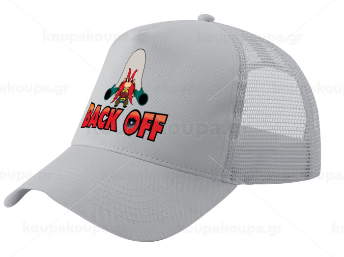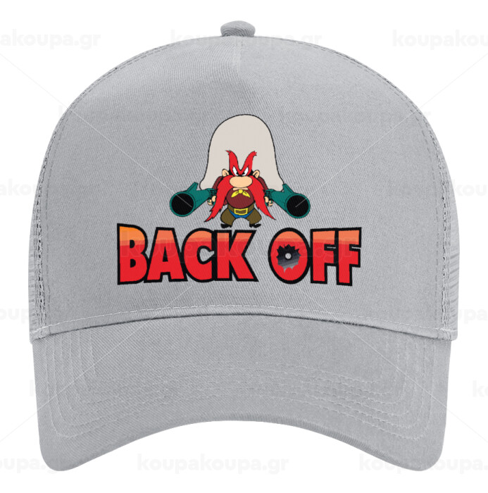 Yosemite Sam Back OFF, Adult Structured Trucker Hat, with Mesh, GRAY (100% COTTON, ADULT, UNISEX, ONE SIZE)