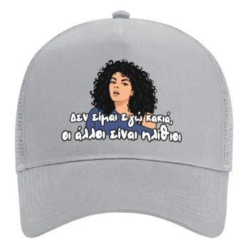 Δεν είμαι εγώ κακιά, Adult Structured Trucker Hat, with Mesh, GRAY (100% COTTON, ADULT, UNISEX, ONE SIZE)