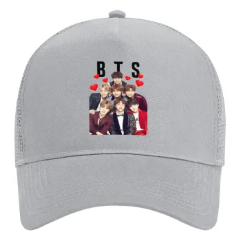 BTS hearts, Adult Structured Trucker Hat, with Mesh, GRAY (100% COTTON, ADULT, UNISEX, ONE SIZE)