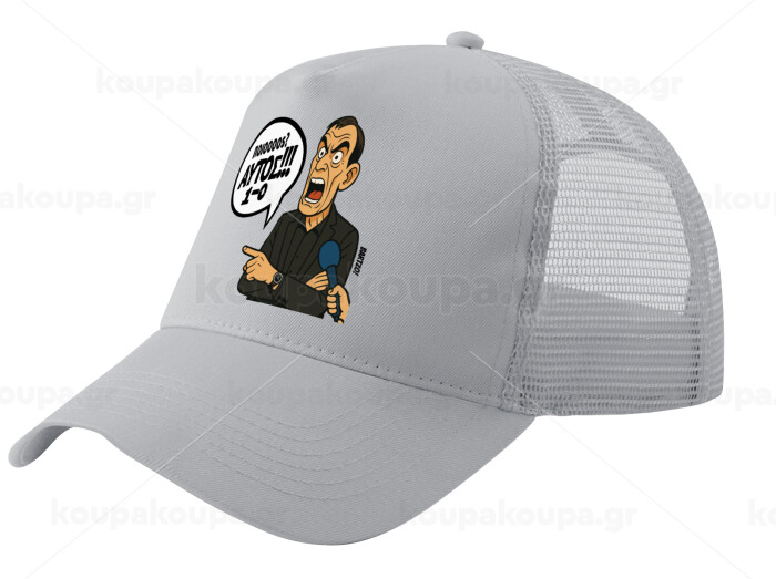 Μπαρτζό, Ποιος? Αυτός!!! 1-0, Adult Structured Trucker Hat, with Mesh, GRAY (100% COTTON, ADULT, UNISEX, ONE SIZE)