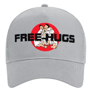 JUDO free hugs, Adult Structured Trucker Hat, with Mesh, GRAY (100% COTTON, ADULT, UNISEX, ONE SIZE)
