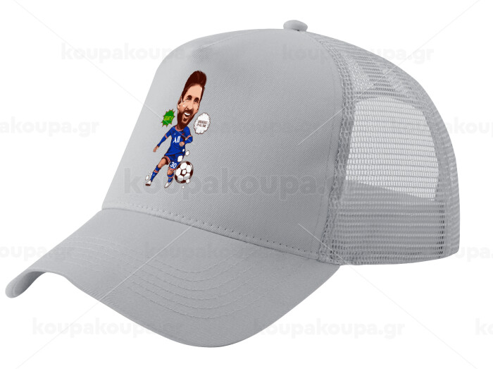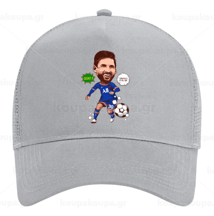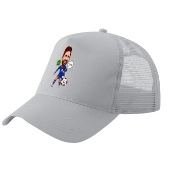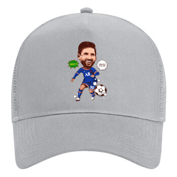 Lionel Messi drawing, Adult Structured Trucker Hat, with Mesh, GRAY (100% COTTON, ADULT, UNISEX, ONE SIZE)