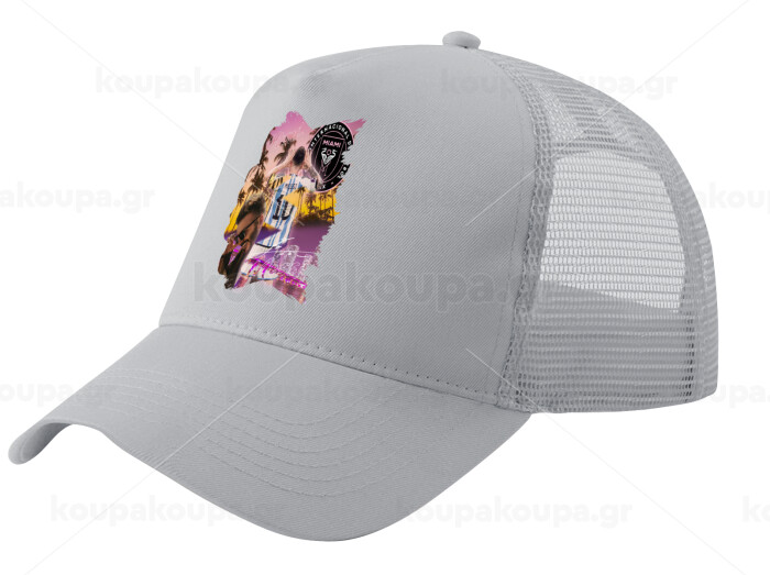 Lionel Messi Miami, Adult Structured Trucker Hat, with Mesh, GRAY (100% COTTON, ADULT, UNISEX, ONE SIZE)