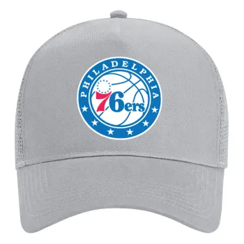 Philadelphia 76ers, Adult Structured Trucker Hat, with Mesh, GRAY (100% COTTON, ADULT, UNISEX, ONE SIZE)
