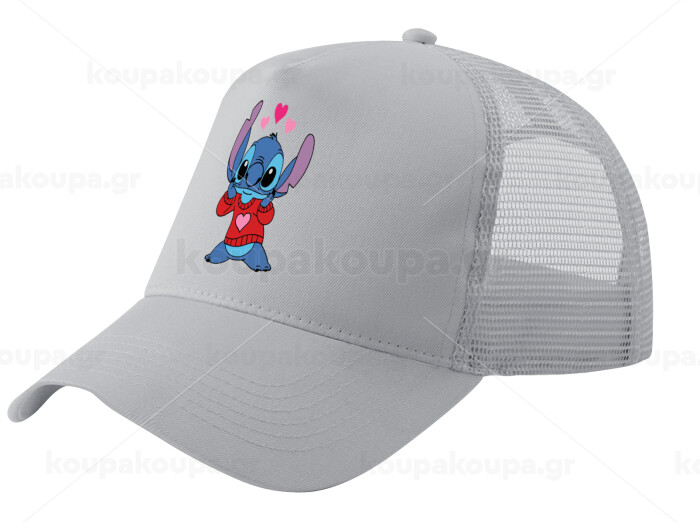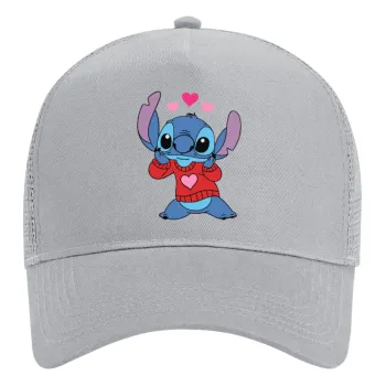 Stitch heart, Adult Structured Trucker Hat, with Mesh, GRAY (100% COTTON, ADULT, UNISEX, ONE SIZE)