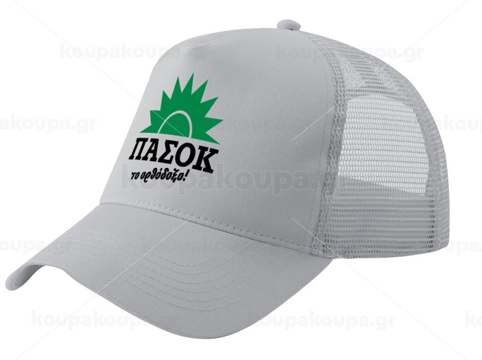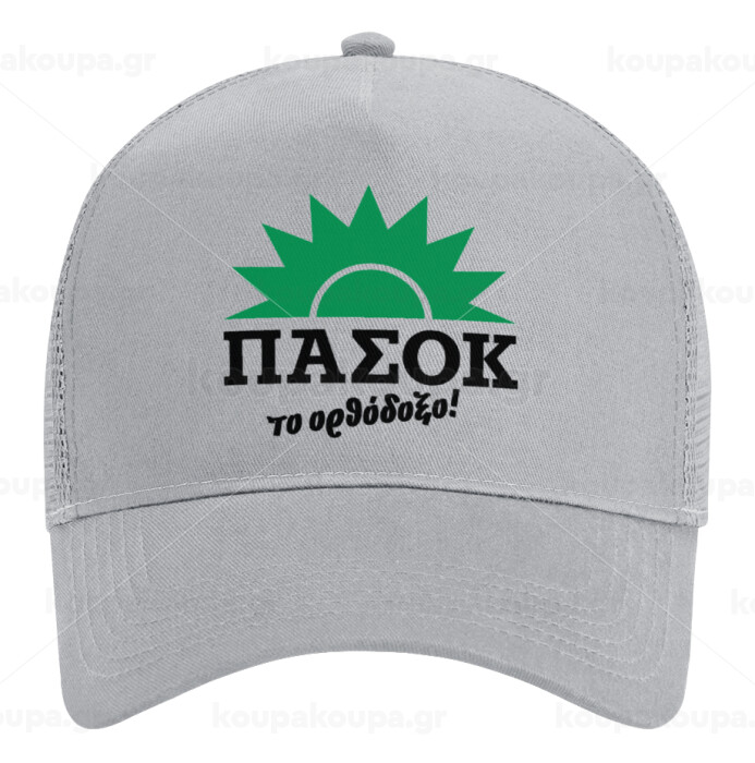 PASOK the orthodoxo, Adult Structured Trucker Hat, with Mesh, GRAY (100% COTTON, ADULT, UNISEX, ONE SIZE)