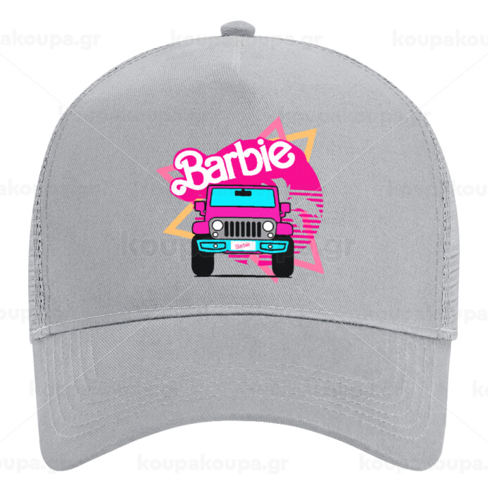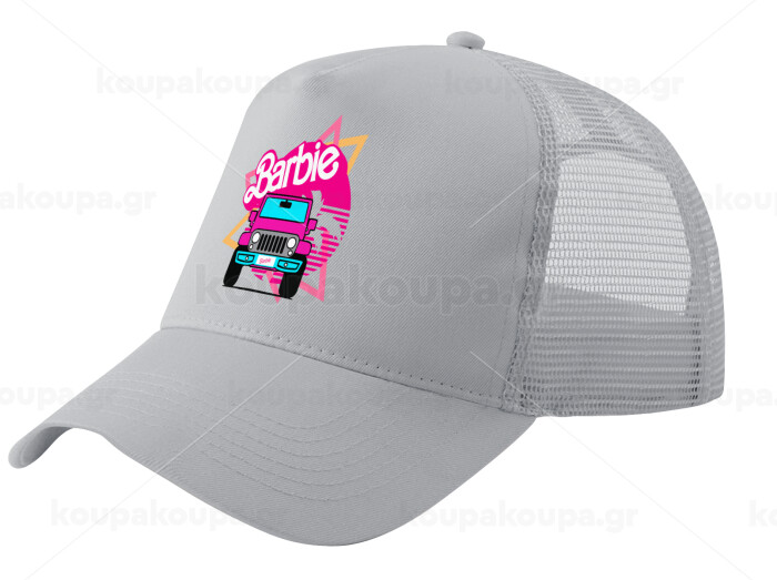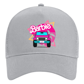 Barbie car, Adult Structured Trucker Hat, with Mesh, GRAY (100% COTTON, ADULT, UNISEX, ONE SIZE)