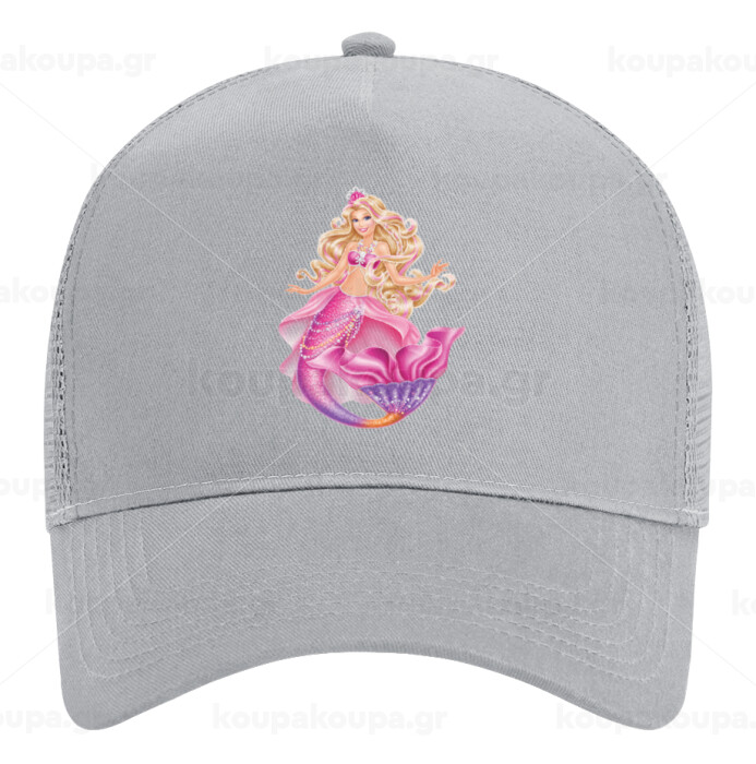 Barbie mermaid blue, Adult Structured Trucker Hat, with Mesh, GRAY (100% COTTON, ADULT, UNISEX, ONE SIZE)