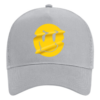 Smile avatar distrorted, Adult Structured Trucker Hat, with Mesh, GRAY (100% COTTON, ADULT, UNISEX, ONE SIZE)