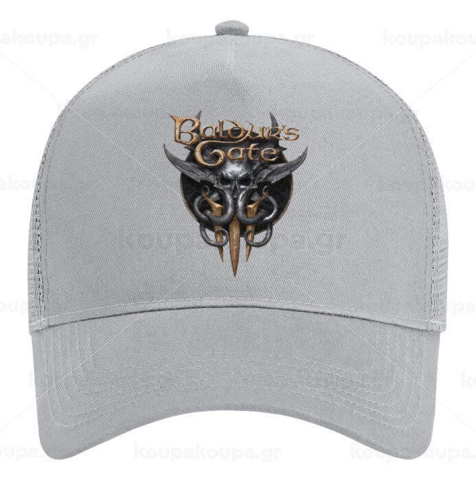 Baldur's Gate, Adult Structured Trucker Hat, with Mesh, GRAY (100% COTTON, ADULT, UNISEX, ONE SIZE)