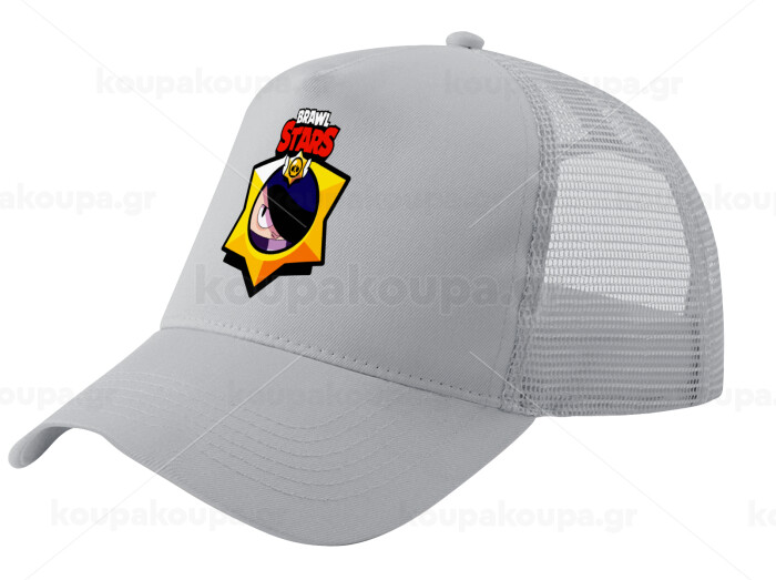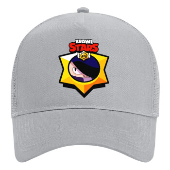 Brawl Stars Edgar, Adult Structured Trucker Hat, with Mesh, GRAY (100% COTTON, ADULT, UNISEX, ONE SIZE)