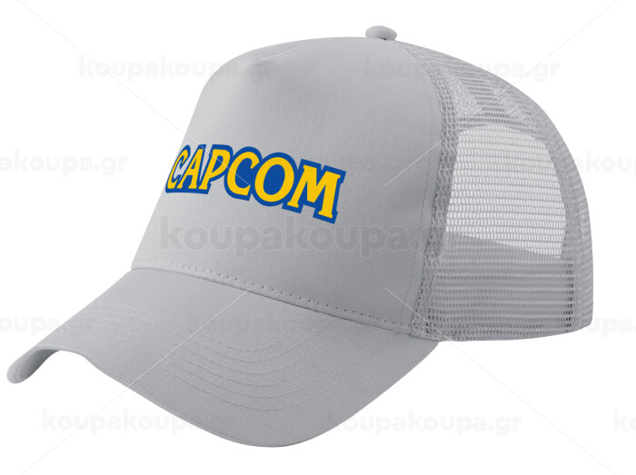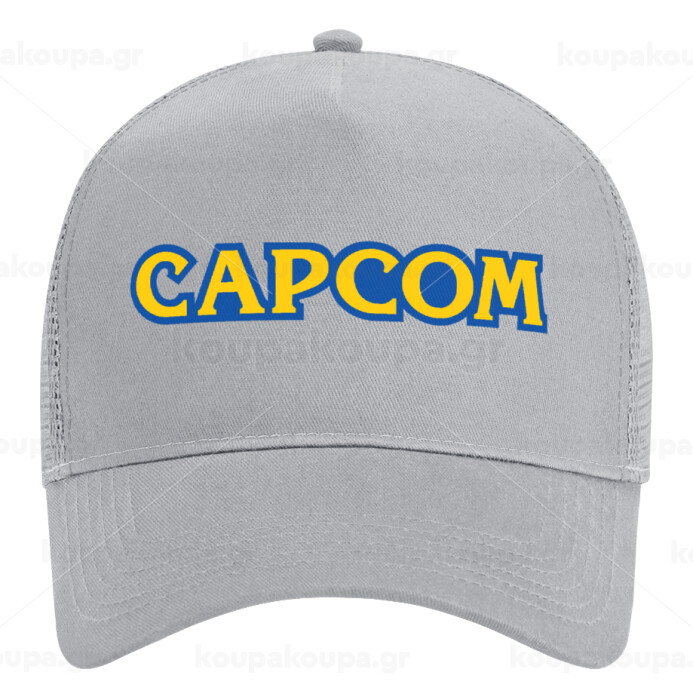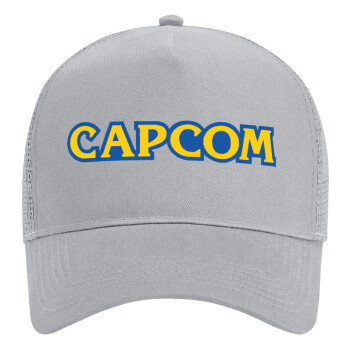 Capcom, Adult Structured Trucker Hat, with Mesh, GRAY (100% COTTON, ADULT, UNISEX, ONE SIZE)
