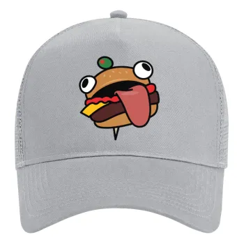 Fortnite Durr Burger, Adult Structured Trucker Hat, with Mesh, GRAY (100% COTTON, ADULT, UNISEX, ONE SIZE)