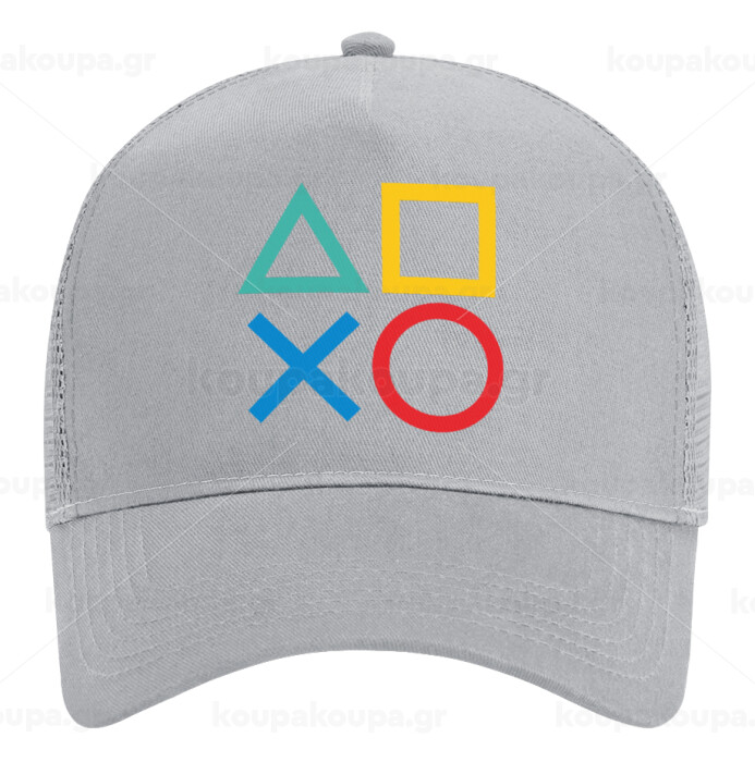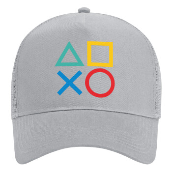 Gaming Symbols, Adult Structured Trucker Hat, with Mesh, GRAY (100% COTTON, ADULT, UNISEX, ONE SIZE)