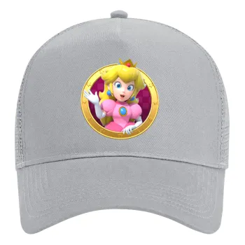 Princess Peach Toadstool, Adult Structured Trucker Hat, with Mesh, GRAY (100% COTTON, ADULT, UNISEX, ONE SIZE)