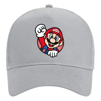 Super mario win, Adult Structured Trucker Hat, with Mesh, GRAY (100% COTTON, ADULT, UNISEX, ONE SIZE)
