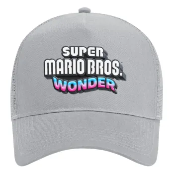 Super mario wonder, Adult Structured Trucker Hat, with Mesh, GRAY (100% COTTON, ADULT, UNISEX, ONE SIZE)