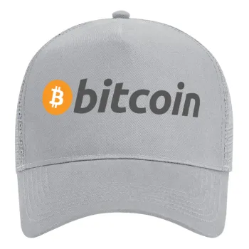 Bitcoin Crypto, Adult Structured Trucker Hat, with Mesh, GRAY (100% COTTON, ADULT, UNISEX, ONE SIZE)