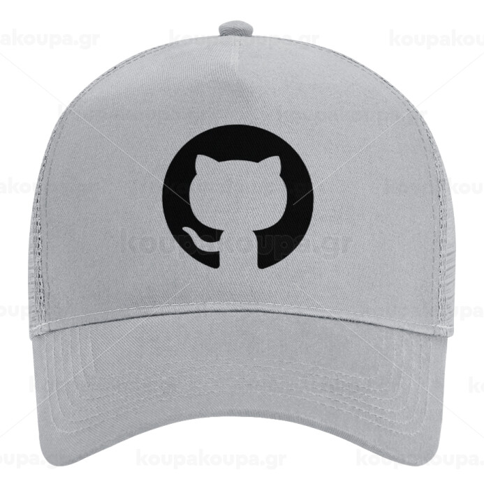 GitHub, Adult Structured Trucker Hat, with Mesh, GRAY (100% COTTON, ADULT, UNISEX, ONE SIZE)
