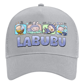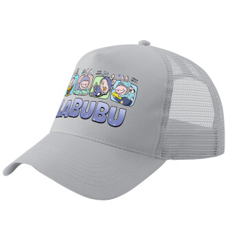Labubu, Adult Structured Trucker Hat, with Mesh, GRAY (100% COTTON, ADULT, UNISEX, ONE SIZE)