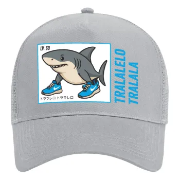 Tralalero Tralala, Adult Structured Trucker Hat, with Mesh, GRAY (100% COTTON, ADULT, UNISEX, ONE SIZE)