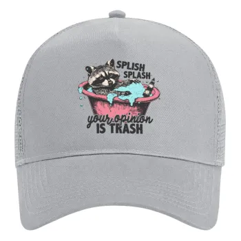 Splish splash your opinion is trash, Adult Structured Trucker Hat, with Mesh, GRAY (100% COTTON, ADULT, UNISEX, ONE SIZE)
