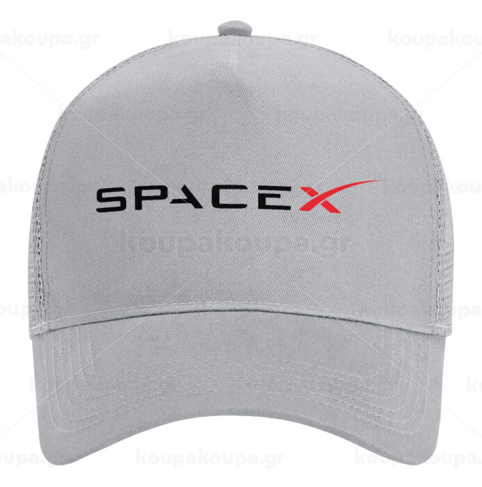 Space X, Adult Structured Trucker Hat, with Mesh, GRAY (100% COTTON, ADULT, UNISEX, ONE SIZE)