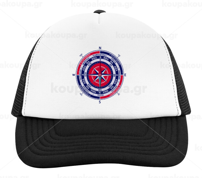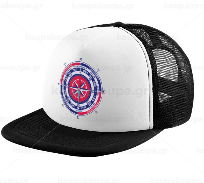 Wind compass, Adult Soft Trucker Hat with Black/White Mesh (POLYESTER, ADULT, UNISEX, ONE SIZE)