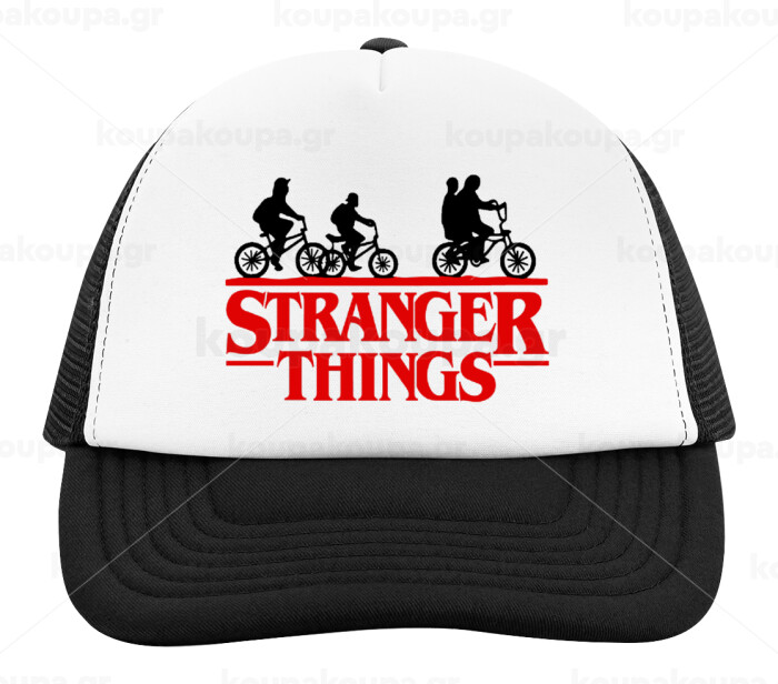 Stranger Things red, Adult Soft Trucker Hat with Black/White Mesh (POLYESTER, ADULT, UNISEX, ONE SIZE)
