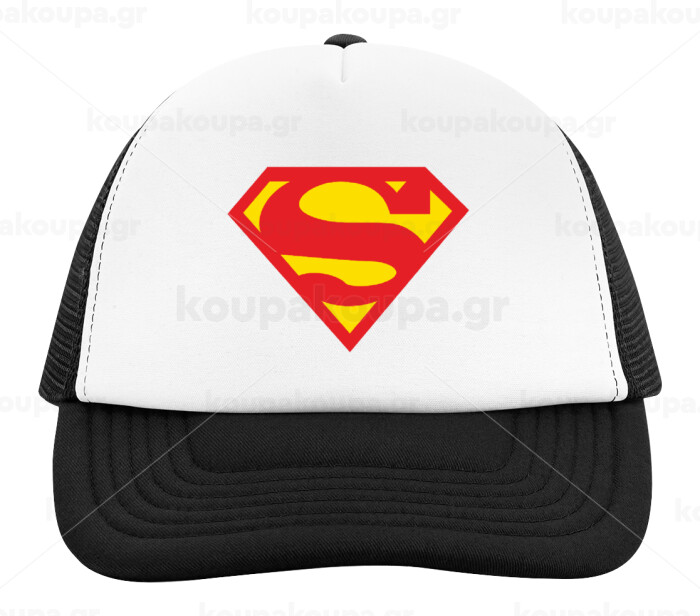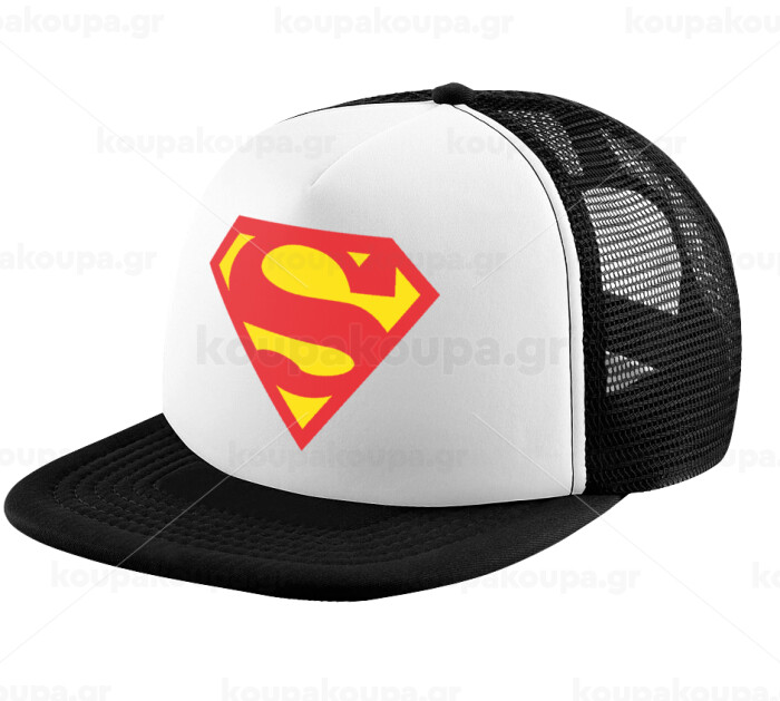 Superman, Adult Soft Trucker Hat with Black/White Mesh (POLYESTER, ADULT, UNISEX, ONE SIZE)