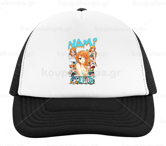 Nami One Piece, Adult Soft Trucker Hat with Black/White Mesh (POLYESTER, ADULT, UNISEX, ONE SIZE)