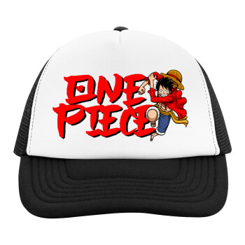 One Piece, Adult Soft Trucker Hat with Black/White Mesh (POLYESTER, ADULT, UNISEX, ONE SIZE)