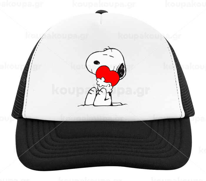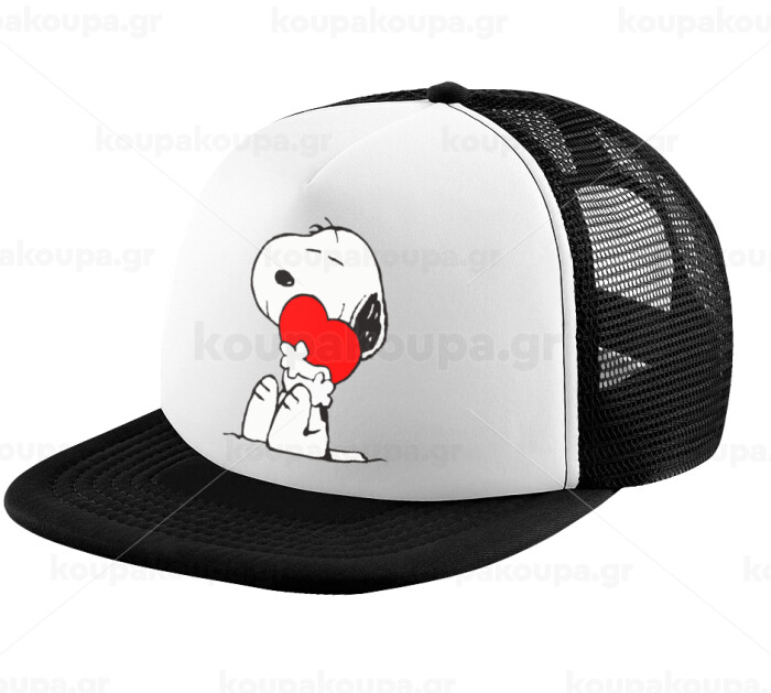 Snoopy, Adult Soft Trucker Hat with Black/White Mesh (POLYESTER, ADULT, UNISEX, ONE SIZE)