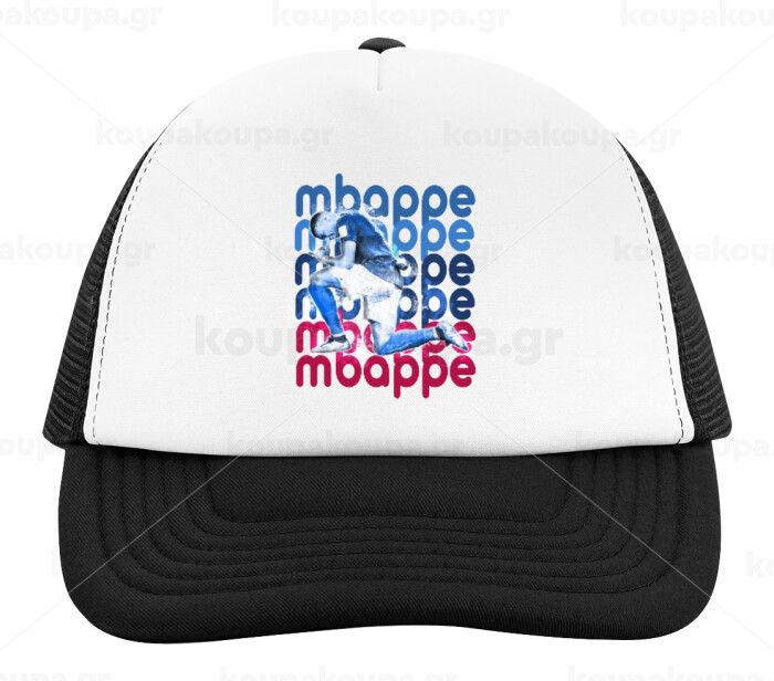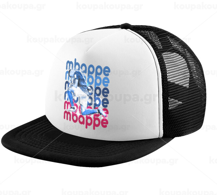 Kylian Mbappé, Adult Soft Trucker Hat with Black/White Mesh (POLYESTER, ADULT, UNISEX, ONE SIZE)