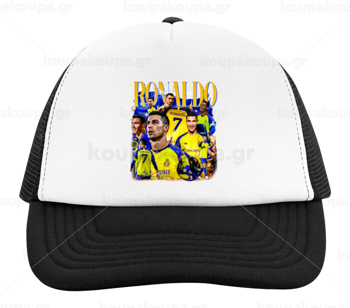 Cristiano Ronaldo Al Nassr, Adult Soft Trucker Hat with Black/White Mesh (POLYESTER, ADULT, UNISEX, ONE SIZE)