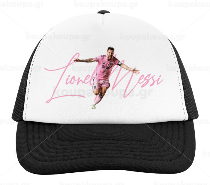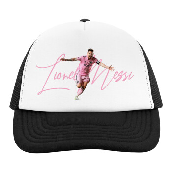 Lionel Messi inter miami jersey, Adult Soft Trucker Hat with Black/White Mesh (POLYESTER, ADULT, UNISEX, ONE SIZE)