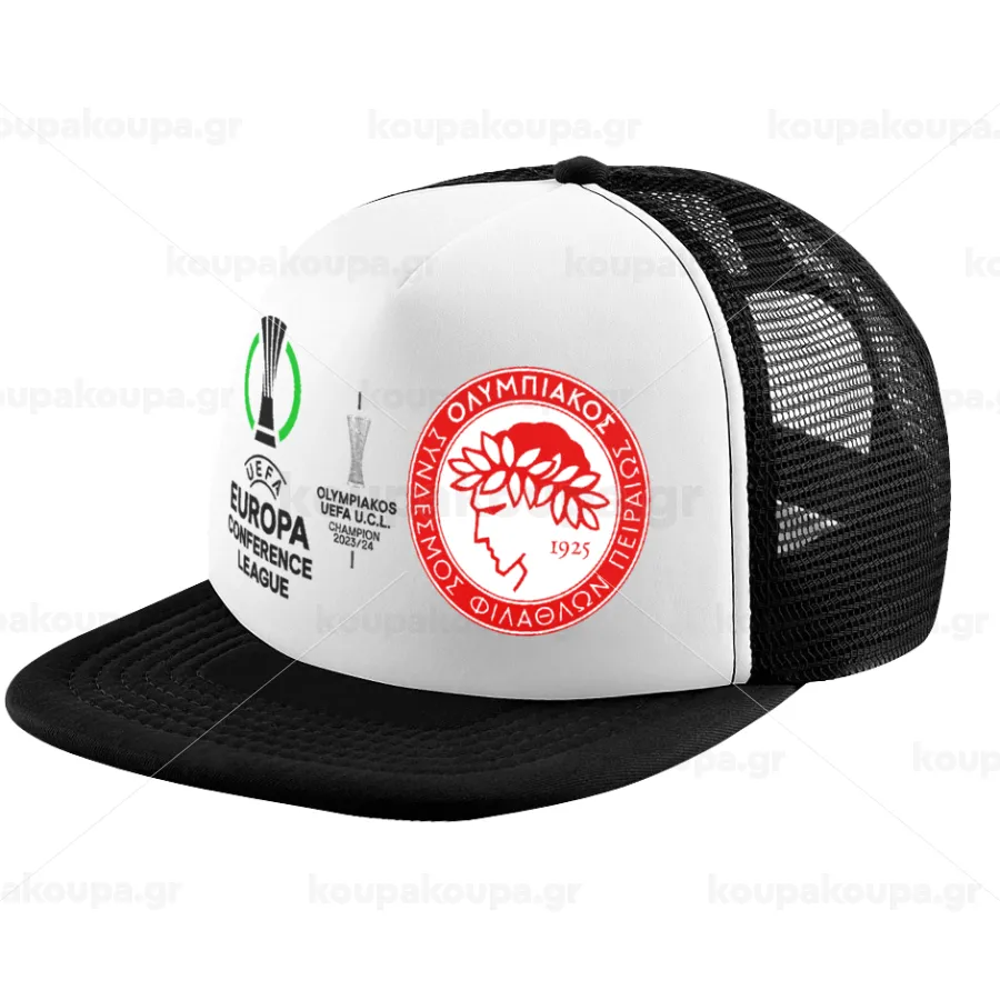 Olympiacos UEFA Europa Conference League Champion 2023/24, Adult Soft Trucker Hat with Black/White Mesh (POLYESTER, ADULT, UNISEX, ONE SIZE)
