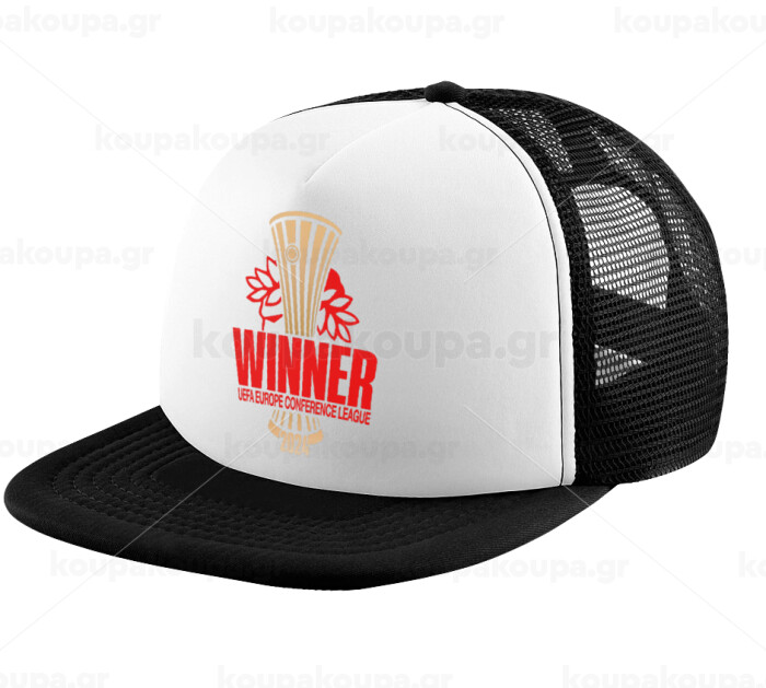 Europa Conference League WINNER, Adult Soft Trucker Hat with Black/White Mesh (POLYESTER, ADULT, UNISEX, ONE SIZE)