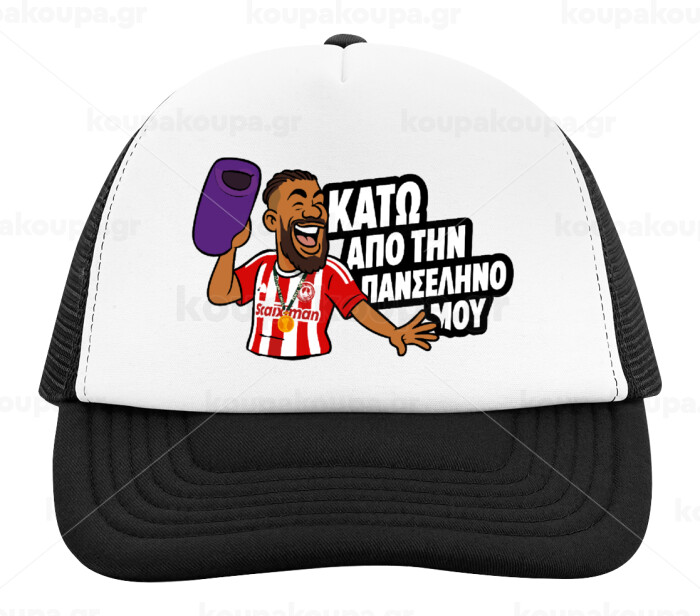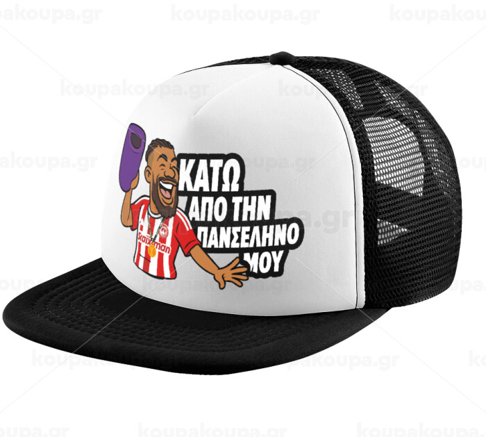 Ροντινέι, "ΚΑΤΩ ΑΠΟ ΤΗΝ ΠΑΝΣΕΛΗΝΟ ΜΟΥ!", Adult Soft Trucker Hat with Black/White Mesh (POLYESTER, ADULT, UNISEX, ONE SIZE)